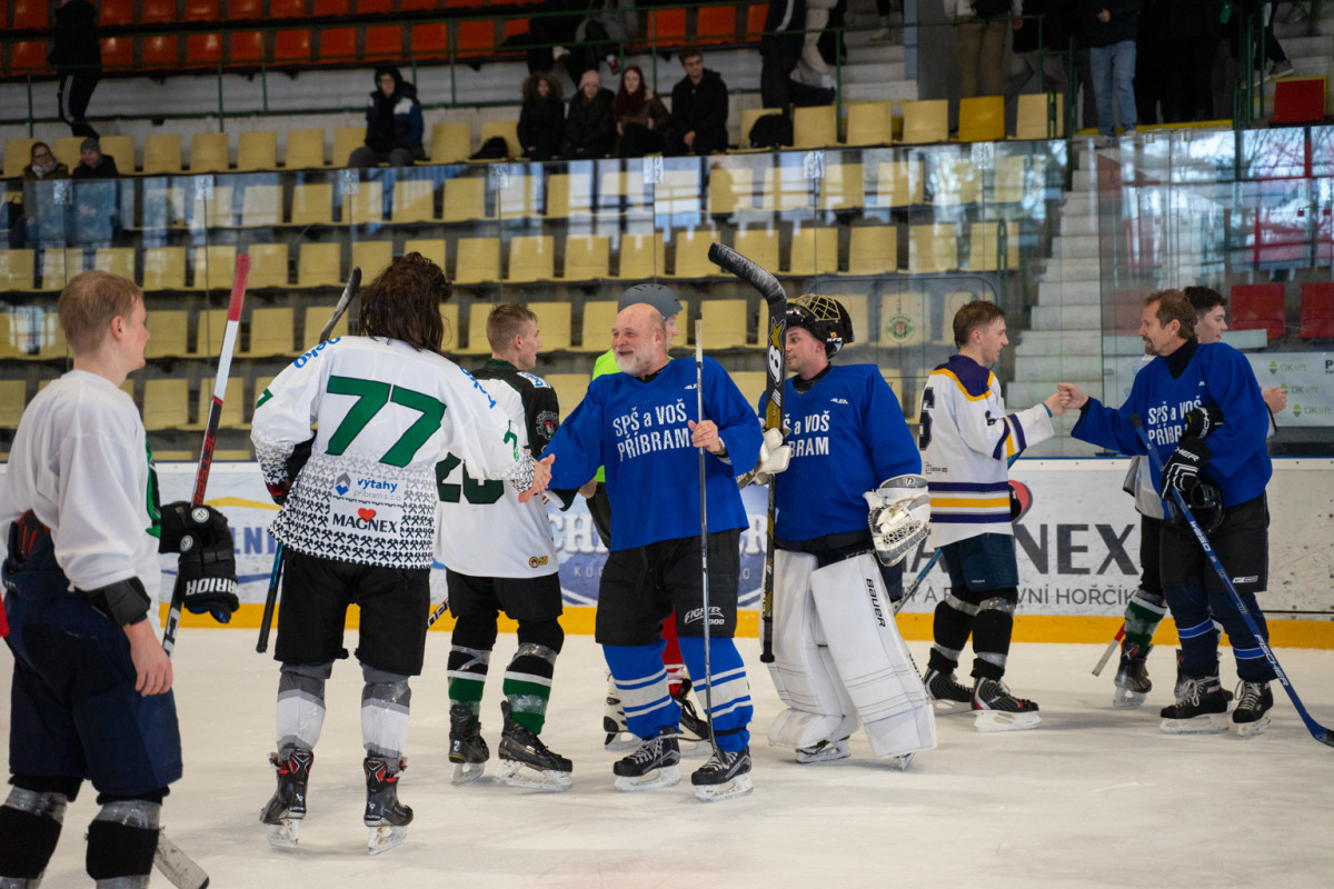 Konec prvního pololetí školního roku kromě předávání vysvědčení také znamená porovnávání hokejových dovedností mezi učitelským sborem a žáky čtvrtých ročníků. Nebylo tomu jinak ani v lednu tohoto roku. Ve velké hale Zimního stadionu v Příbrami proti sobě nastoupila družstva učitelů a žáků. Celkový počet hráčů se přeci jen lišil, učitelů bylo nakonec 11 a žáků 29. Obě družstva neponechala nic náhodě a vybavila se dostatečnou hokejovou výstrojí, aby vše dopadlo bez zranění. Podle slov žáků se na letošní mač velmi těšili, neboť ve svých řadách měli několik dosud hrajících hokejistů a tak o výsledku měli jasno. V řadách učitelů však převládla zkušenost a odhodlání neprodat svoji hokejovou kůži jen tak. První minuty zápasu dokonce přinesly první branku na straně učitelů, ale to bylo bohužel poslední vedení v zápase. Důsledným bruslením i pěknou herní kombinací žáci postupně navyšovali vedení až na konečných 7 gólů v síti učitelů. Naopak staré gardě se podařilo žákům vstřelit góly 3. Závěr zápasu byl veden velmi korektně a na obou stranách bylo nařízeno trestní střílení za drobné fauly. Po skončení zápasu byly ještě provedeny nájezdy jedenácti hráčů z každého družstva. Tentokrát měli učitelé více štěstí a vyhráli v úspěšnosti 2 : 1. Utkání bylo vnímáno velmi pozitivně a opět se zapsalo do naší kroniky jako přátelské setkání školy i potvrzení skvělé atmosféry mezi učitelským sborem a žáky školy. Těšíme se na příští rok a doufáme, že učitelské družstvo obohatí nastupující generace a bude důstojným hokejovým soupeřem. Děkujeme všem organizátorům, rozhodčím, časoměřičům i divákům za příjemný sportovní zážitek. Následuje fotogalerie, reportáž TV Fonka a video sestřih.