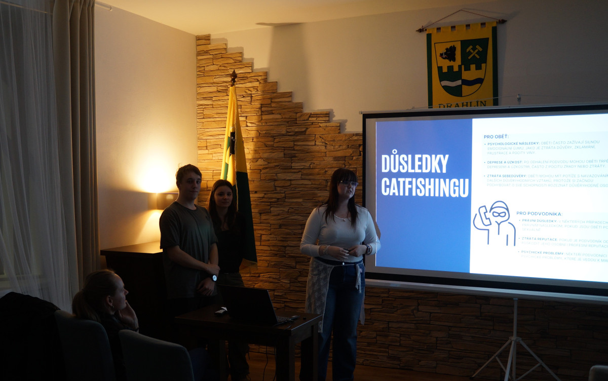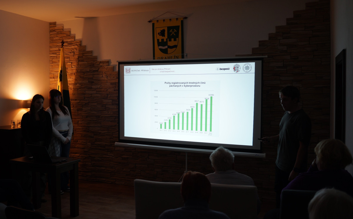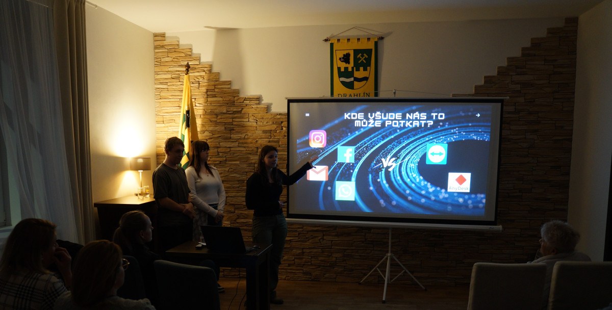 Ve středu 5.3. proběhla přednáška žáků 2.IT (Anežka Mrázková, Barbora Pauknerová, Ondřej Slovák) o Kyberbezpečnosti pro klub FIT senior Drahlín. Žáci předávali členům klubu své znalosti a zkušenosti z oblasti kyberbezpečnosti.
