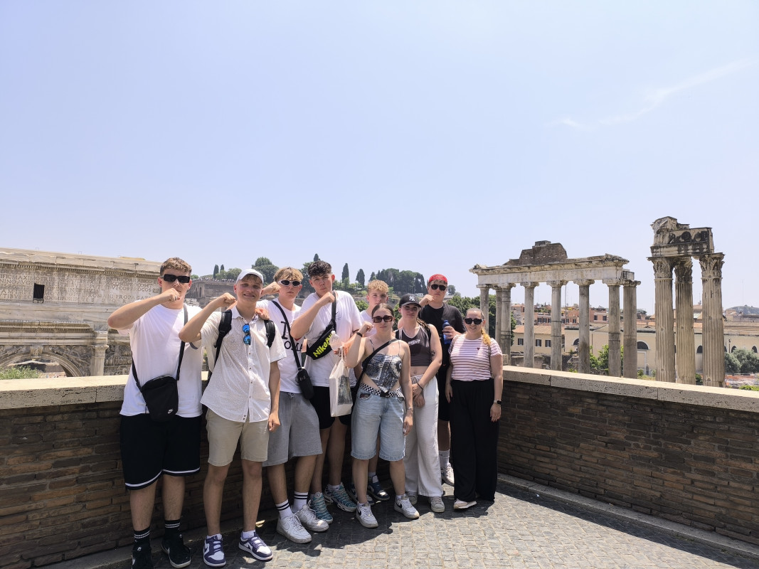 Poslední den našeho pobytu jsme zahájili u Španělských schodů a Fontány di Trevi, kde nechyběla ani výborná zmrzlina. Poté jsme směřovali k Panteonu a následně k ikonickému Kapitolu, jednomu z nejvýznamnějších vrcholků starověkého i současného Říma. Kolem Fora Romana jsme pokračovali ke Koloseu. Po prohlídce Kolosea jsme se vydali metrem k autobusu a zamířili zpět do naší Příbrami.