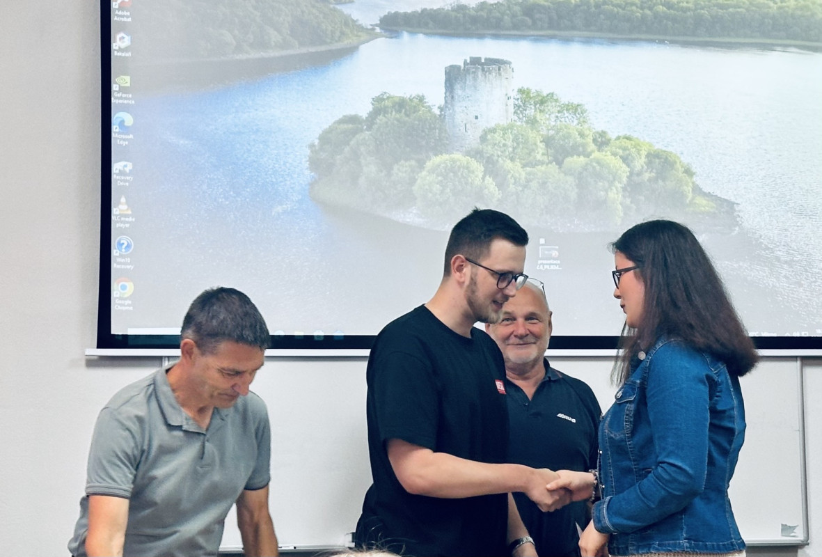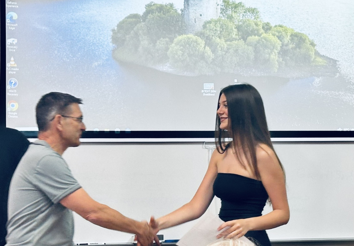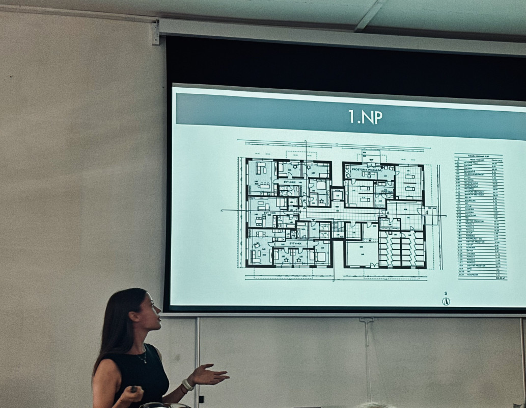 Závěrem ročníku byla prezentace a seznámení s projekty nejlepších studentů z jednotlivých tříd (3.PA Dominika Dvořáková a 3.PB Martin Pilík) před vedením školy, které tak mělo možnost nahlédnout do „stavařské výuky“.
