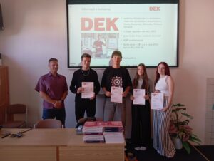 Společnost DEK a.s. ve spolupráci s Fakultou stavební VUT v Brně a Fakultou stavební ČVUT v Praze pořádá pro studenty 3. ročníku středních průmyslových škol stavebních soutěž DEKTALENT. Této soutěže ze zúčastnili studenti 3. ročníků 2024/2025 oboru Pozemní stavitelství a architektura. V rámci ročníkového projektu z Konstrukčního cvičení, studenti navrhovali rodinný dům v podrobnostech pro stavební povolení. Bylo provedeno školní kolo a vybrány projekty pro soutěž DEKTALENT. Dne 8.9.2025 byly zástupcem firmy DEK a.s. p. Ing. Zieglerem Tomášem předány diplomy zúčastněným studentům. Jmenovitě 1. místo Anna Žejdlíková, 2. místo Dominika Dvořáková, 3.místo Martin Pilík, 4. místo Adam Hylán.