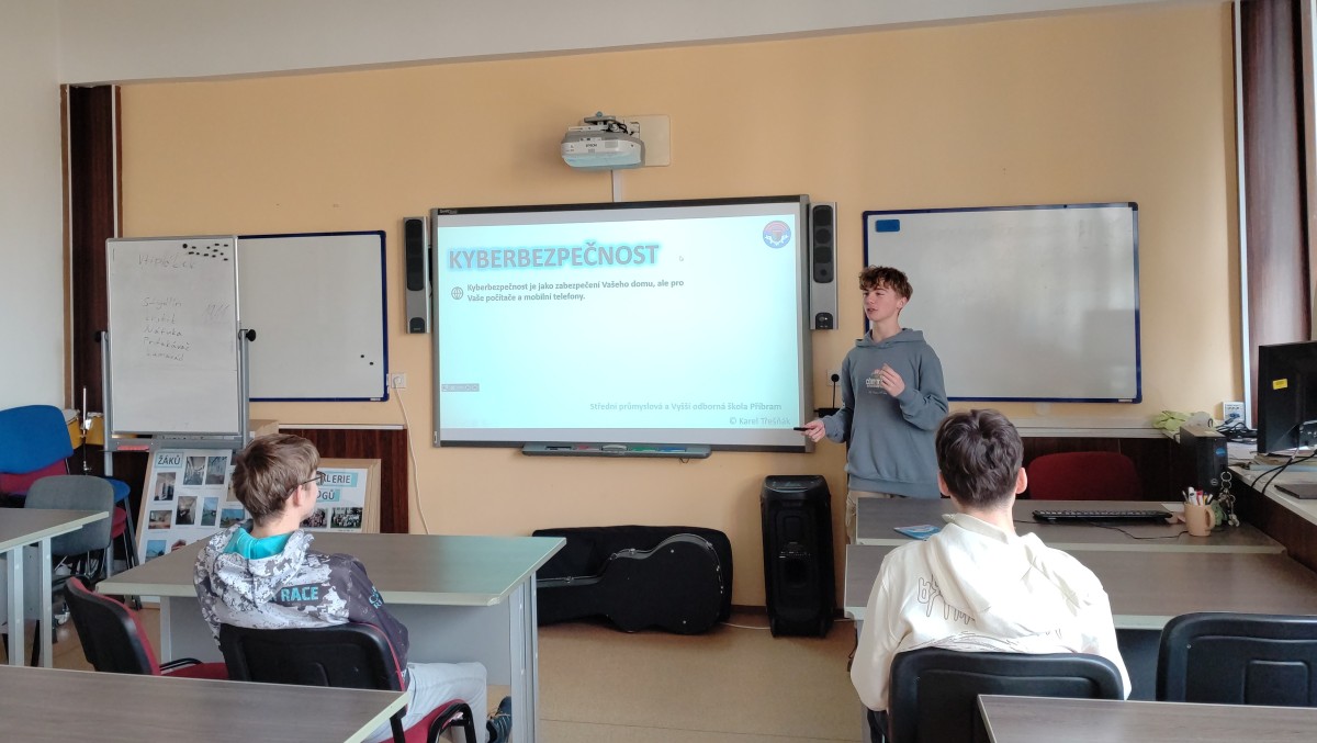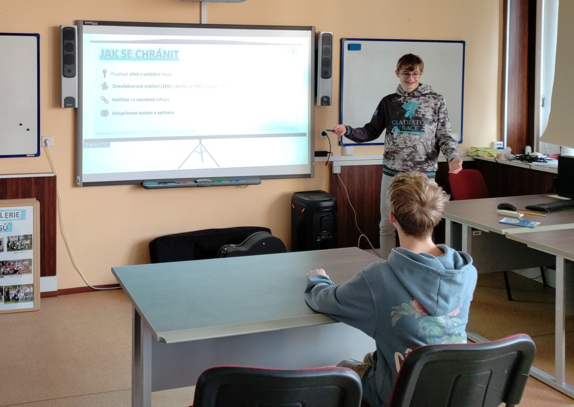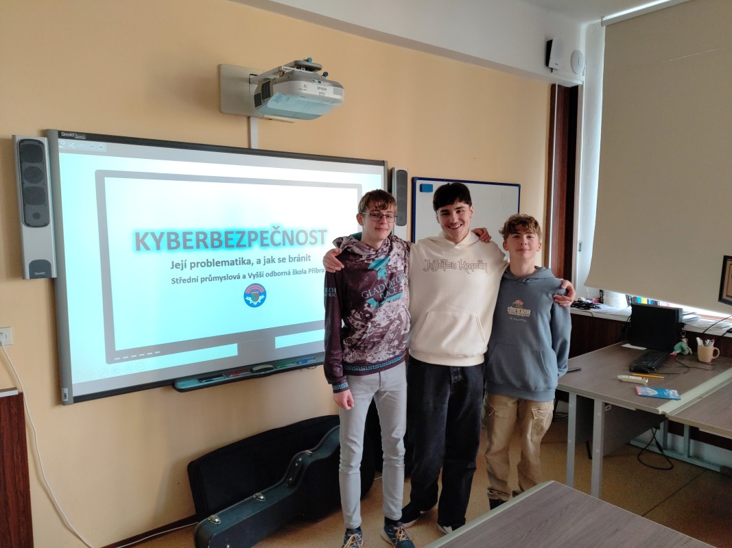 V prosinci proběhla přednáška žáků 2.IT (Lukáš Novák, Richard Svoboda a Karel Třešňák) o kyberbezpečnosti pro žáky 8. tříd 2. základní školy Dobříš.